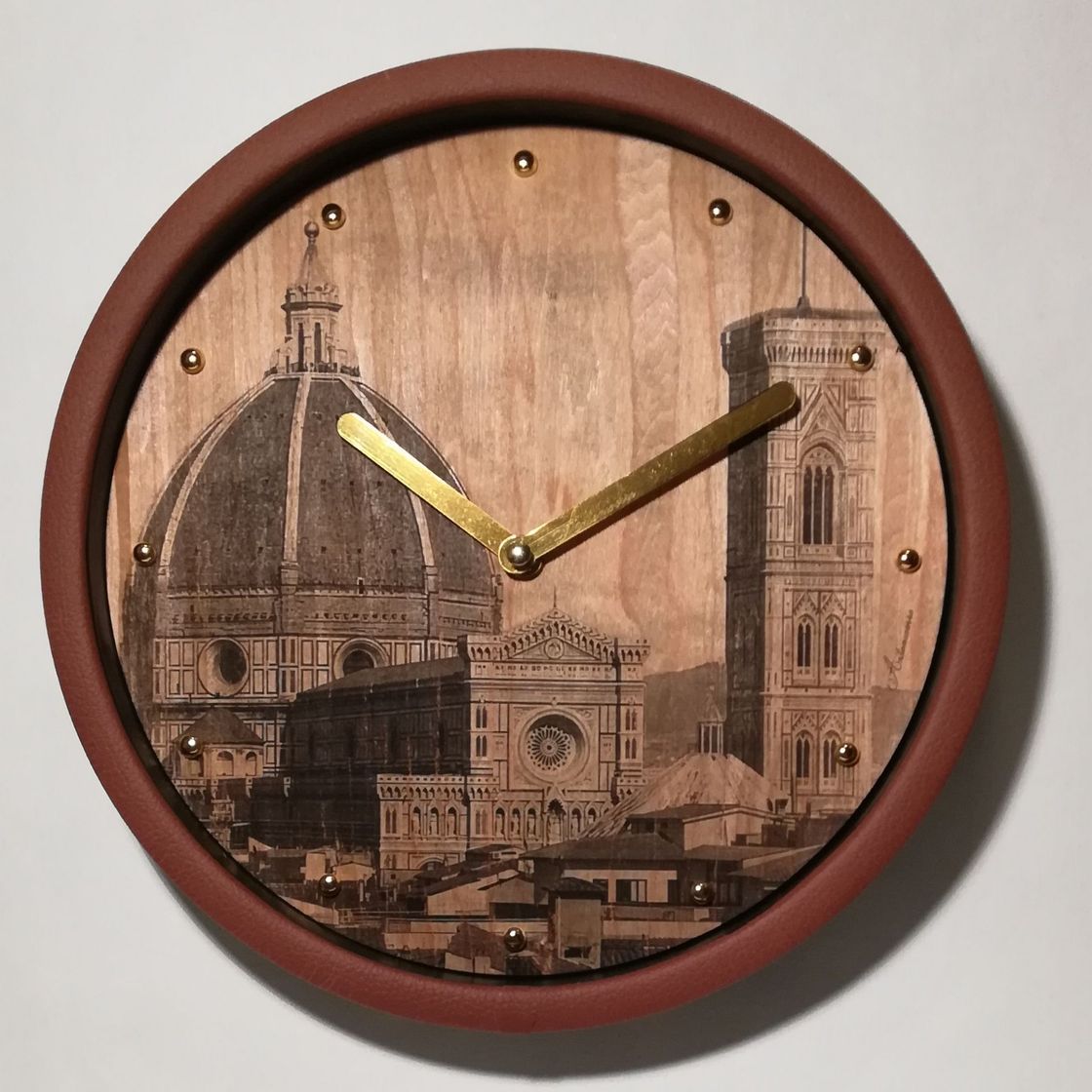 Orologi con i monumenti di Firenze realizzati a mano su legno